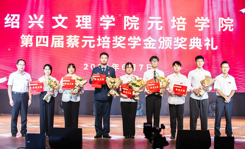 在学院第四届蔡元培奖学金颁奖典礼上,蔡元培奖学金获得者建筑工程分院陈芊润、语言文学分院金方慧、信息机电与工程分院方鑫,经济管理分院金诗婧、纺织服装与艺术设计分院许俞杰、学院龙舟队共同上台领奖,院党委书记梁瑜,院长沈红卫为获奖者颁发奖金和证书。金诗婧同学代表蔡元培奖学获得者发表获奖感言。