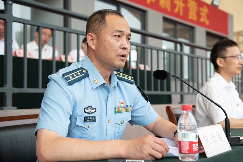 学院2020、2021级学生军训团团长、柯桥区人武部部长张鹏俊讲话