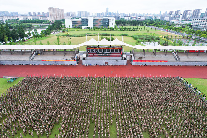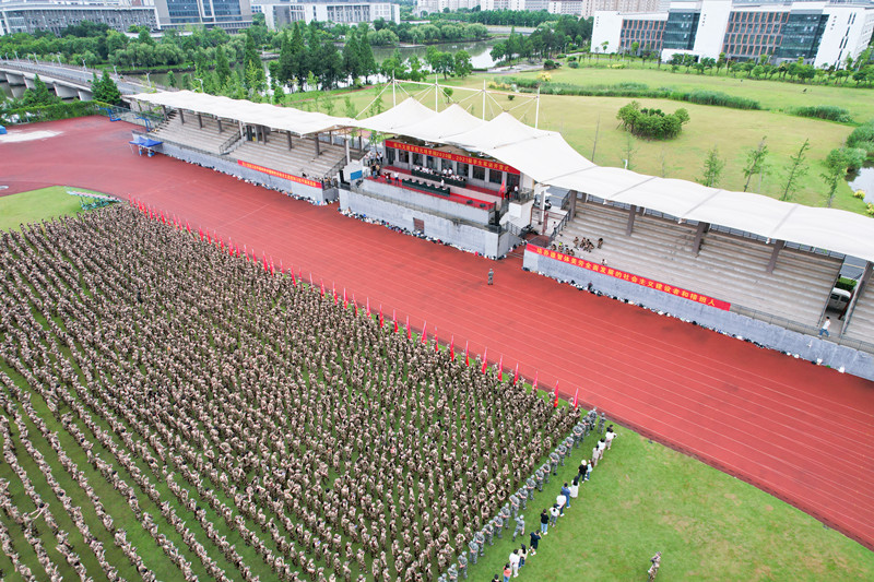 吹响青春集结号,强国一代有我在。在“七一”建党节来临之际,6月20日上午,学院2020、2021级学生军训开营式在北区田径场举行。学校副校长陈均土,军训团团长、柯桥区人武部部长张鹏俊,学院党委书记梁瑜、院长沈红卫、副院长李黎以及学院军训领导小组成员、全体承训教官、指导员、参训学生出席开营式。陈均土向军训团授团旗。沈红卫作军训动员报告。开营式由学院党委副书记石旭明主持。