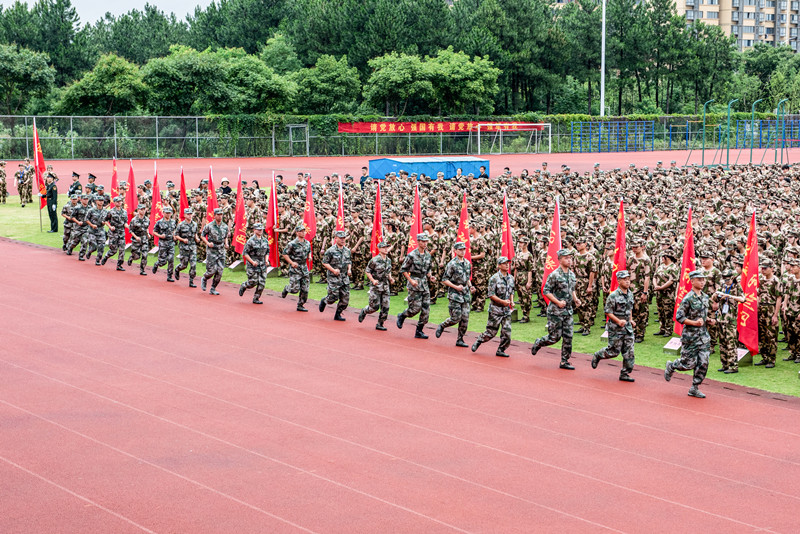 开营式结束后,来自44个连队的3800余名大一、大二学生在连队教官、指导员的带领下,开始分散训练,正式开启了为期11天的军训。