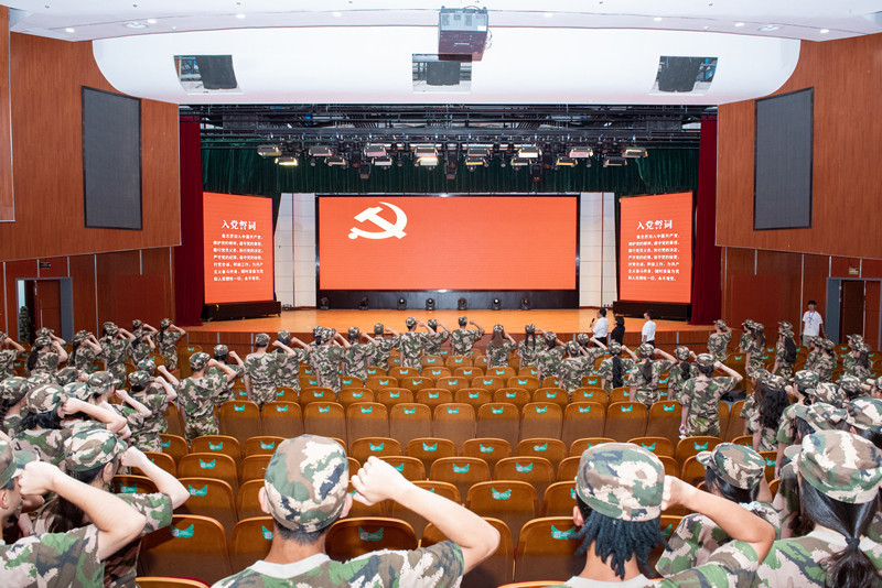 “我志愿加入中国共产党,拥护党的纲领,遵守党的章程……”,全体预备党员身着军训服、佩戴党员徽章,按照“101”的站位,在梁瑜的领誓下,高举右手,庄严宣誓。 雄浑有力的誓言、掷地有声的承诺,让每一位预备党员进一步坚定了“不忘初心、砥砺前行、一心向党”的理想信念,更加明确了奋勇拼搏的使命、责任和担当。