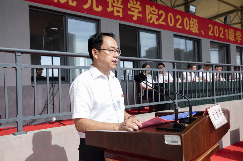 梁瑜表示,在庆祝建党101周年、喜迎党的二十大召开之际,同学们在军事技能训练期间,用崭新的风貌、昂扬的斗志、奋发的锐气,展现了强体魄、练心智、铸军魂的英姿风采,宣告了“强国有我”的铮铮誓言。希望大家进一步保持在军训过程中训练出来“千磨万击还坚劲”的耐力,坚持久久为功不放松,在磨练自己的同时主动感应时代的脉搏,学习人民解放军把对祖国血浓于水、与人民同呼吸共命运的情感贯穿学业全过程、融汇在事业追求中,在实现中华民族伟大复兴的时代洪流中做踔厉奋发、勇毅前进的奋斗者。