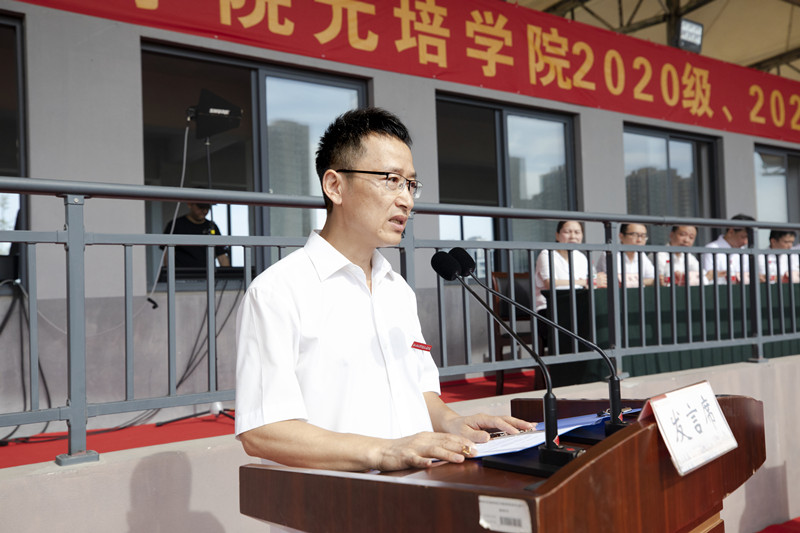 沈红卫宣读关于表彰2020、2021级学生军训先进连队、优秀教官的决定。第2连等10个连队被评为先进连队。冯锋等12人被评为优秀教官。