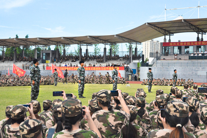 莘莘学子绿戎装,不畏烈日锐志昂。6月30日上午,学院2020、2021级学生军训闭营式在北区田径场举行。军训领导小组副组长、柯桥区人武部军事科中校科长沈连珊,院党委书记梁瑜、院长沈红卫等党政班子成员以及学院军训领导小组成员,全体学员、教官、指导员出席闭营式。闭营式由军训团政委、院党委副书记石旭明主持。
