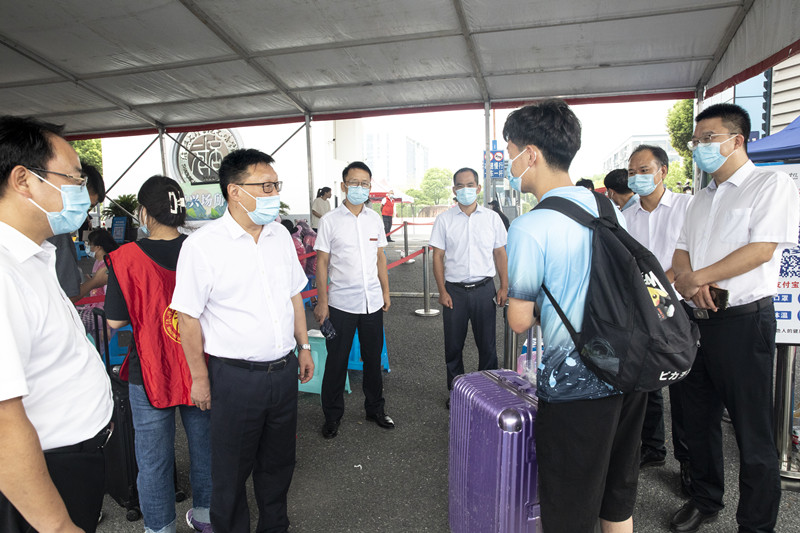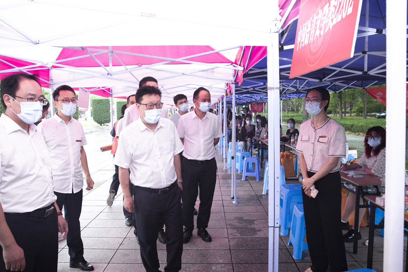 9月2日,太阳喜迎2022级本科新生入学报到。当天上午,校党委书记汪俊昌、副校长陈均土一行来院,检查指导学院开学疫情防控和迎新工作,听取有关工作汇报,看望2022级新生,慰问迎新工作人员、学生志愿者。院党委书记梁瑜、院长沈红卫作工作汇报,班子全体成员陪同走访。