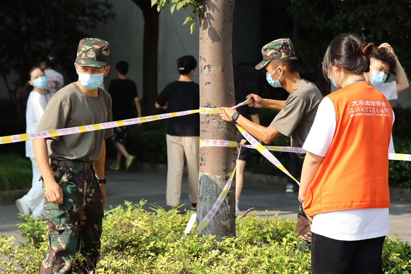 早晨七点,医务人员和师生志愿者已到达核酸采样点,提前做好各项准备工作。学生志愿者积极引导师生员工扫码并进入核酸检测通道,严格“把关”各个环节;党员教师志愿者逐一查验健康码,做好秩序维护等服务工作;医务人员奋战在采样一线,反复进行消毒、采集,高质量地完成每一次采样工作;校园督察队化身“守卫者”,切实筑牢核酸检测安保防线。