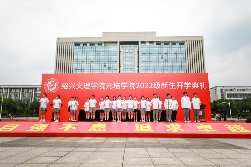 9月16日下午,学院在元培广场举行2022级新生开学典礼,来自五湖四海的近2000名新生正式加入“元培大家庭”,以青春之姿、昂扬之态共同开启在元培的人生全新篇章。院领导梁瑜、沈红卫、李黎、石旭明、沈玮、俞国芬、周思红,院党委委员王学炎、徐锋,各二级分院、职能部门负责人,学院教师代表,老生代表,全体辅导员、新生班班主任参加典礼。典礼以现场和网络直播结合的方式举行,邀请每一位新生家长一道“云”出席典礼。