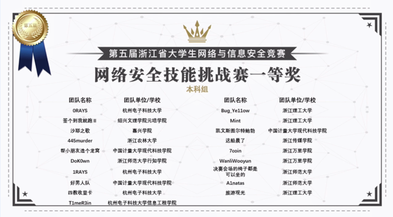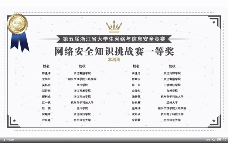 三项省一等奖!太阳学子在浙江省第五届大学生网络与信息安全竞赛中创佳绩