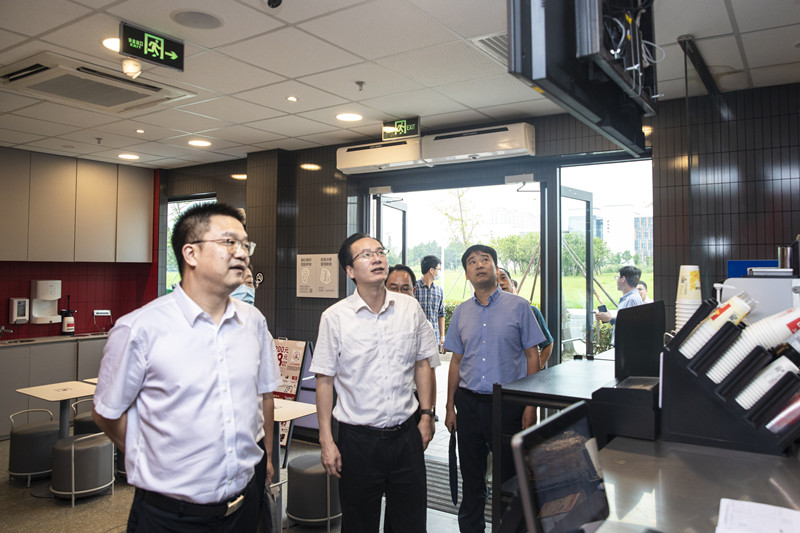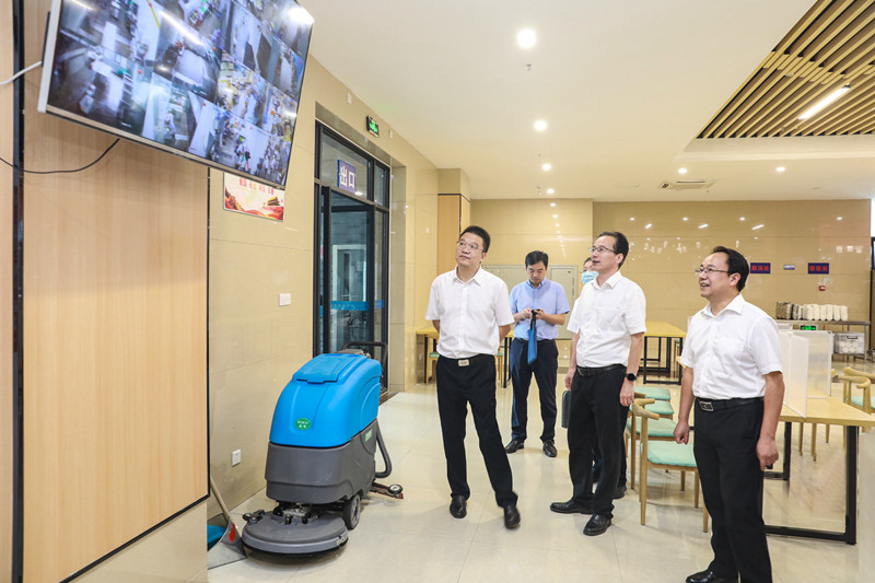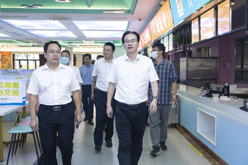 会前,校领导一行实地走访了群贤楼美食城、肯德基、瑞幸咖啡、兴越楼食堂、物流中心、安保中心,对学院餐饮服务、安全稳定等系列举措表示充分肯定。