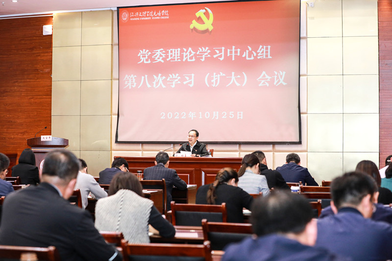 10月25日下午,学院党委理论学习中心组举行党的二十大精神专题学习会,深入学习贯彻党的二十大精神,研究部署学院学习宣传贯彻工作。院党委书记梁瑜主持会议并讲话,院党委理论学习中心组成员、全体中层干部出席会议。