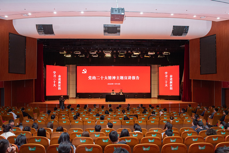 绍兴市委组织部,绍兴市教育局相关领导,校党委书记汪俊昌,校党委委员、副校长陈均土,学院党政班子成员,全体中层干部,学院分院两级理论学习中心组成员,组织员,党支部书记和学生代表参加宣讲会。