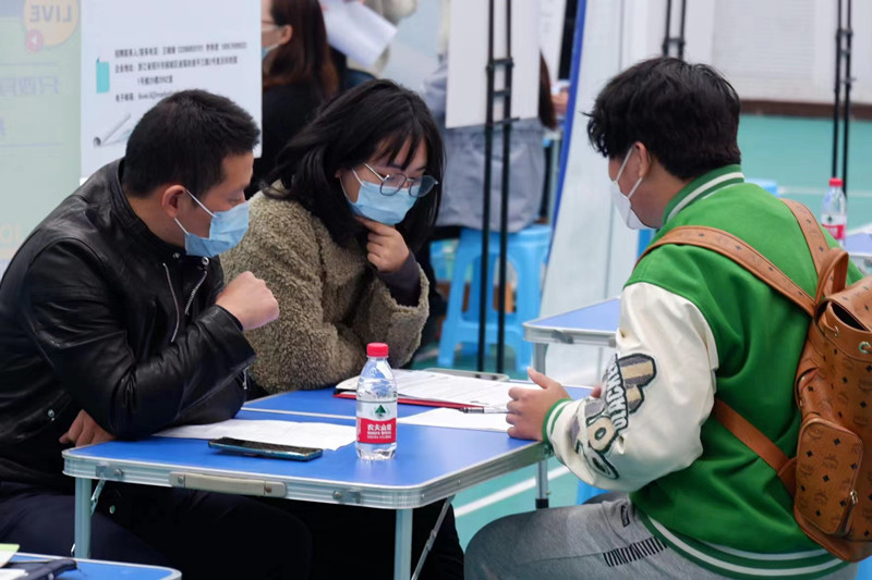 在本次招聘会中,浙江康思特动力机械有限公司、宁波方太营销有限公司、浙江环宇建设集团有限公司、浙江精工重钢结构有限公司等42家用人单位参会,为毕业生提供涵盖经贸类、管理类、建筑类、IT类、语言类等700余个就业岗位,1000余名毕业生参加招聘会活动。招聘会共收到简历500余份,经过双向选择和洽谈,初步统计452名学生达成就业实习意向。现场,越城区人社局引才专员与参会学生详细介绍越城区产业生态及人才4.0政策。