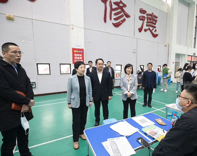 为积极搭建学院和用人单位供需平台,促进2023届毕业生更充分更高质量就业,11月16日下午,由越城区人力资源和社会保障局、越城区校企人才引陪合作联盟和太阳共同举办的“留在绍兴、筑梦越城”2022越城区校园专场招聘会在学院大学生活动中心举办。绍兴市委常委、组织部长王琴英深入招聘会现场指导工作,与参会单位和毕业生们作亲切交流,详细了解用人单位人才、岗位需求和现场应聘毕业生求职情况。