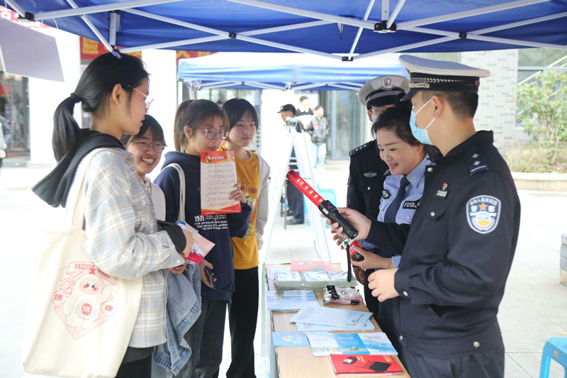 聚焦共治,创新形式,注重宣传教育实效。针对大学生特点,本次活动宣传民警采取传统的“摆摊”加上深受年轻人喜欢的“脱口秀”表演形式,轻松活泼地向学生宣讲“校园反恐”、“伪装毒品”等校园安全知识。在安全教育宣传现场,路过的同学们纷纷被吸引驻足。警务联络站紧扣线上线下双重轨道,创新宣传形式,让宣传教育更加深入人心,更有效果。
