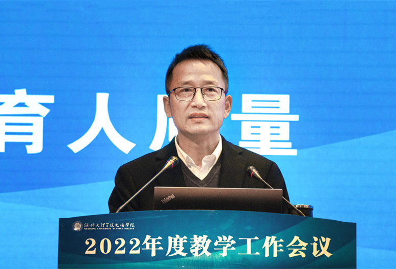沈红卫作“实施‘三个一’工程,争建一流课程”为题的主旨报告,通过“我们一直在努力”、“问题依然很突出”、“未来需要更用心”三个部分阐述学院二十余年来课程建设工作取得的成绩、目前课程建设工作和课堂教学中存在的主要问题,以及对学院未来课程建设和课堂教学的思考和展望。针对课堂教学中存在的问题,沈红卫强调,课程是人才培养的核心要素、基础工程,全体教师要从思想、观念和方向上提高认识,转变思路,对教师这份职业有更深刻的理解,对一流课程的内涵有更全面的认识。在谈到如何争创一流课程时,他指出,要从学院、分院、教师三个维度共同发力,完善评价激励和保障机制,实施好“三个一”工程,用感情、数字和学术为一流课程建设赋能。