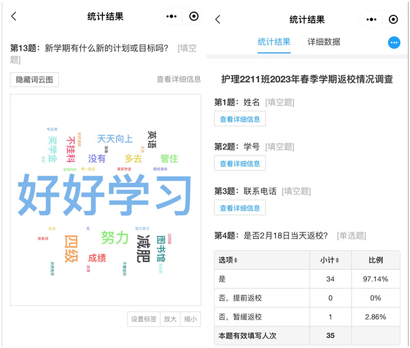 本学期开学前学院组织了7个学院、250多个班级召开线上班会,200余名班主任通过云端相聚的方式,与8816名学生畅谈规划、化解焦虑、共话成长。为了促进学风,更好的了解学生,班主任在开学前作了一次问卷调查,同时勉励大家树立信心,尽早收心,以全新的姿态投入到新学年学习中,小小的举动感动了同学的心。