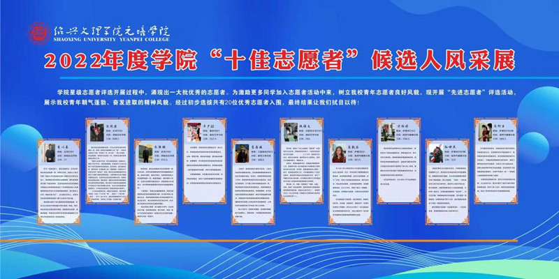 学院分层分类开展道德模范、最美元培人、最美志愿者等评选,完善发现、培育、选树、褒奖、践行等全链条工作闭环,建立“好人榜”立体式宣传阵地,聘选一批行有礼、心有德的“元培”有礼形象代言人,全面打造有礼典型矩阵。近日,学院团委通过组织线上线下活动,评选产生学院第一届“十佳学生志愿者”。通过大力宣传校园志愿者的感人事迹,体现人文关怀,倡导文明新风,营造有利于志愿服务的浓厚舆论氛围。