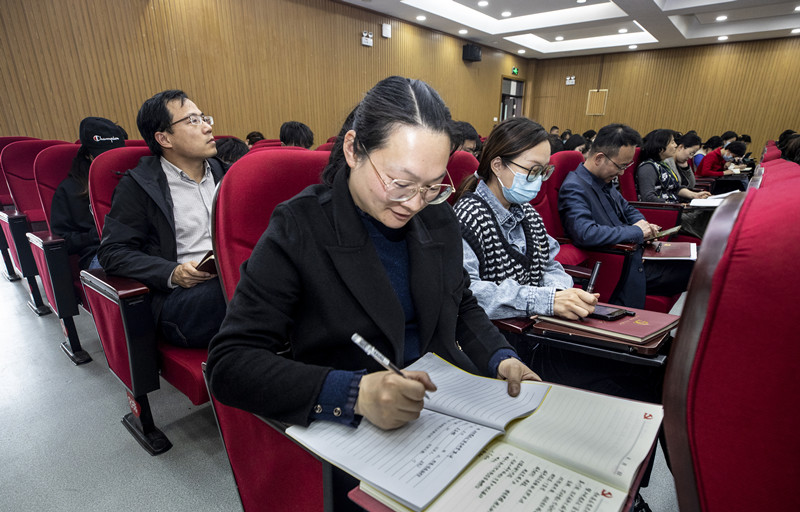 3月15日下午,绍兴市国土空间规划研究院党委书记、院长金斌受邀来院作“绍兴网络大城市解读”专题报告。学院党委领导、越城区东浦街道党员代表、机关党总支、建筑工程分院、公共基础教育分院等三个党总支理论学习中心组成员、机关全体党员和学院首批梁柏台青年人才学院学员代表等参加讲座。