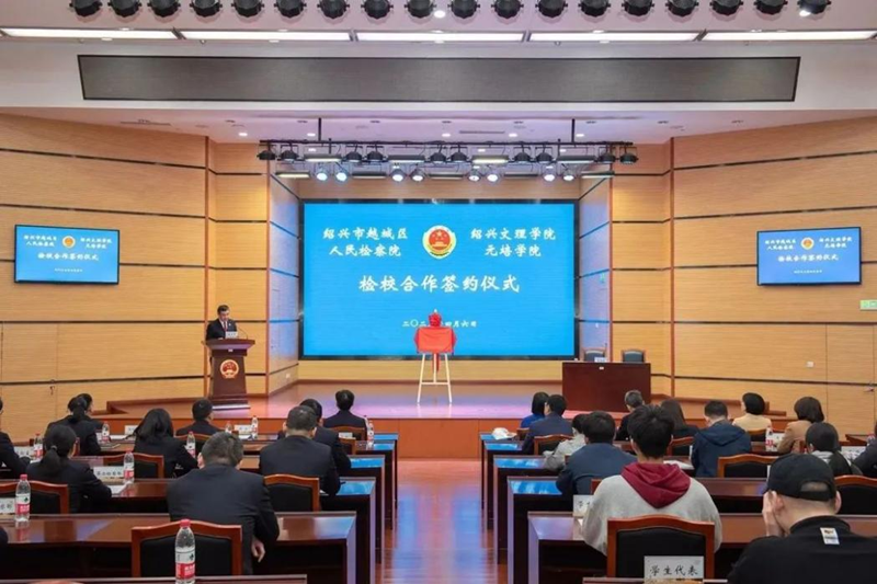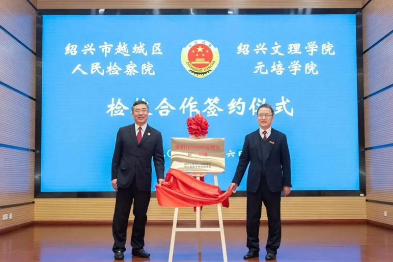学院党委副书记、纪委书记俞国芬和越城区人民检察院党组成员、政治部主任吴新斌共同为“教学与就业实习基地”揭牌