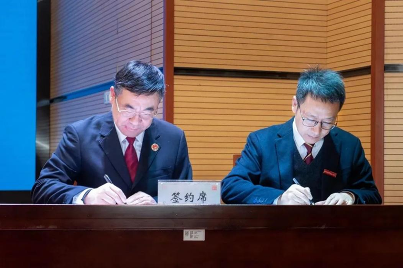 学院院长沈红卫和越城区人民检察院党组书记、检察长周江共同签订检校合作协议书