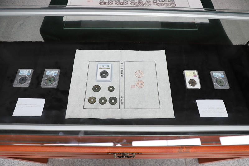 拓印是一项古老的印刷技艺,取材十分广泛,可以来自碑刻、印章、钱币等文物。拓印与照相机拍摄也大不相同,拓印能够更“原汁原味”的反映出钱币的尺寸、深浅。指向一枚“绍兴”钱币,金余池开始饶有趣味地介绍:“钱币体积小且方便收纳,我在拓印时首选了钱币。这一枚钱币很珍贵,是宋高宗让下官先试做的几个样品,也叫‘试铸样’。”