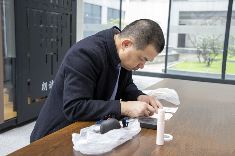 说起来轻描淡写,但墨迹的薄厚、点墨的均匀、字画线条的清晰程度,都是很难掌握的技巧,背后是长达多年的功夫。“墨汁要用自己磨的,才能尽量地使拓片表面更有透气性和立体感。”金余池边研磨边说道,“制作拓片的整个过程耗时耗力,需要反复练习几年的时间,不断去培养自己的手感,才基本掌握力度,从而使拓片更有观赏性和艺术的价值。”