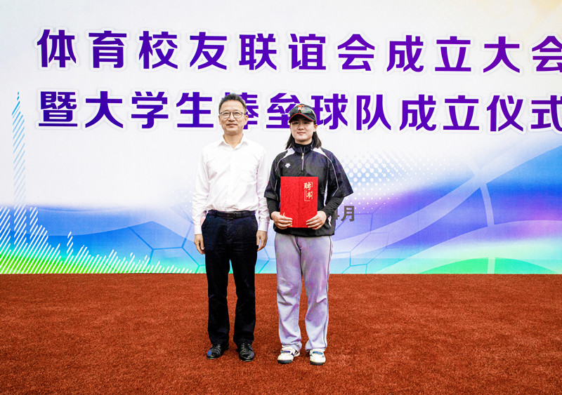 学院院长沈红卫为棒垒球队教练颁发聘书