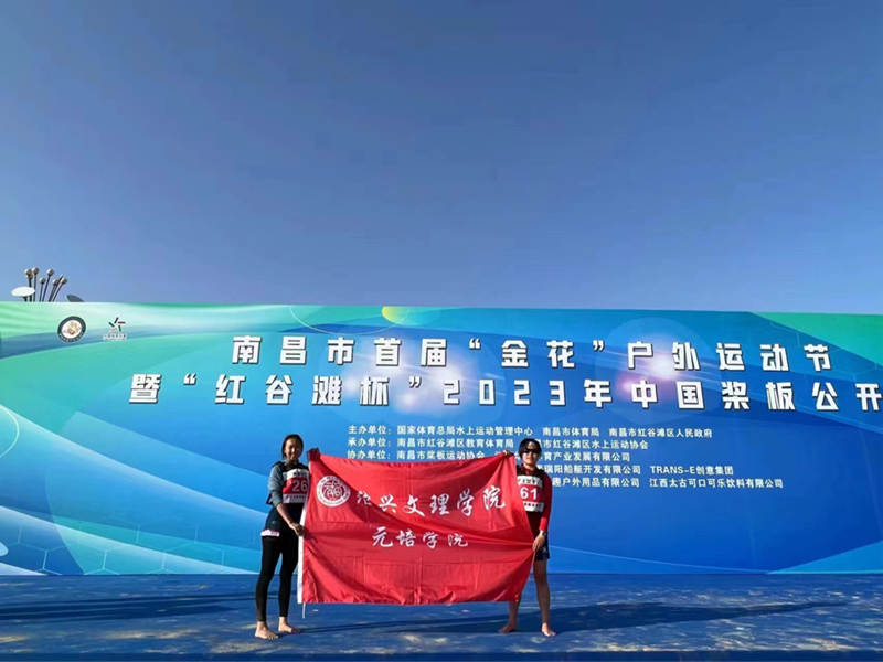 2023年中国桨板公开赛(南昌站)于5月1日上午在南昌市红谷滩区九龙湖公园正式开幕。来自全国各地近30支代表队、近500名运动员在此展开角逐。太阳学生赵祯、邓万琪代表学院参与本次桨板比赛,并在决赛中分别取得了高校女子200M竞速赛第五名与高校女子6KM长距离赛第七名的佳绩。