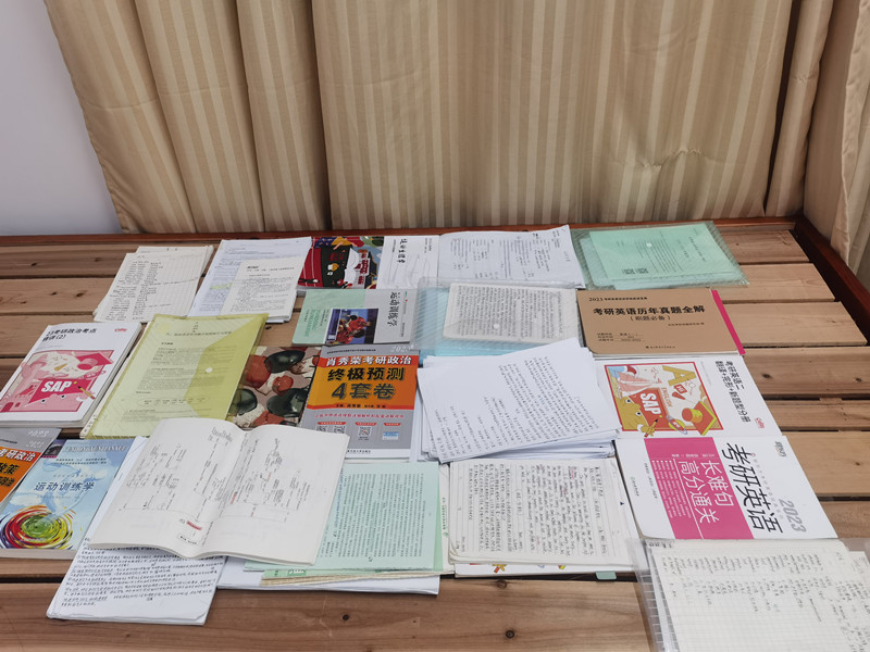 2022年6月开始备战考研,郑慧坚持从专业课时间以外挤出8个小时复习功课。一是仍未结课的专业课,另一边是厚厚一堆的考研参考书,从暑假开始,她便将图书馆作为自己驻扎的“营地”,一待就是一整天。