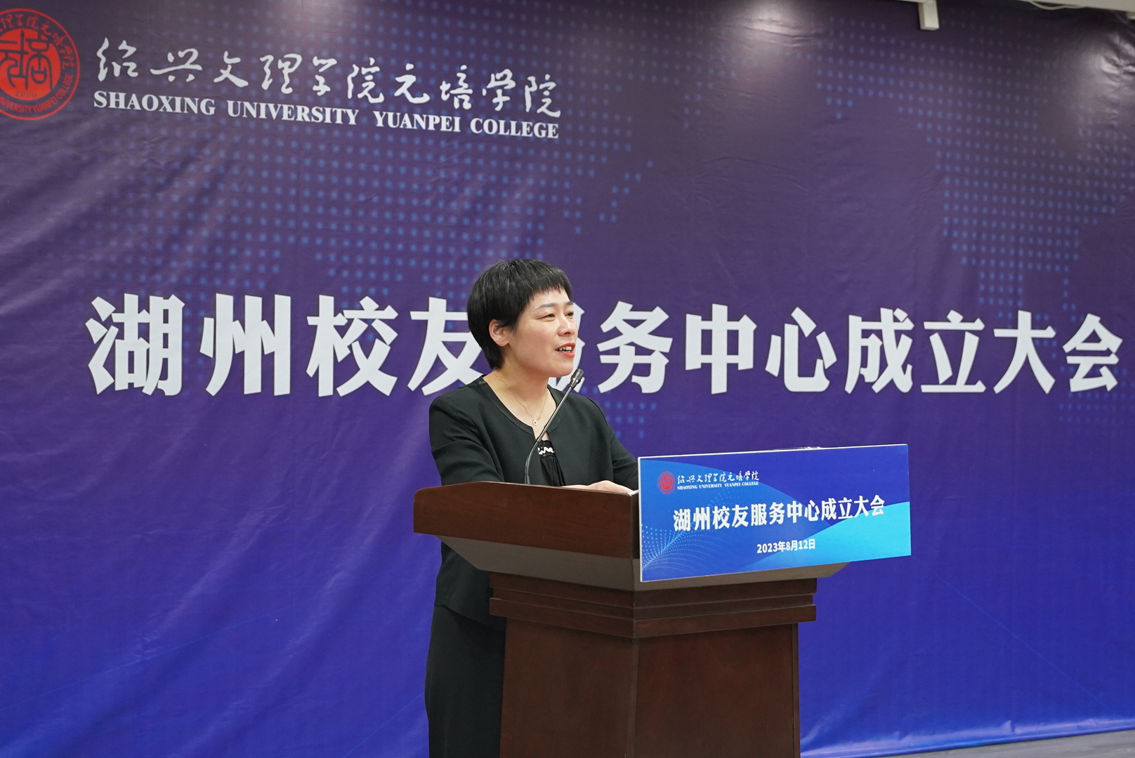 俞国芬代表学院党委、行政向湖州校友服务中心的成立以及湖州校友服务中心第一届理事会、监事会班子成员表示热烈祝贺,对湖州校友服务中心筹备组成员和积极加入校友服务中心的各位校友表示感谢,并向校友们介绍了学院的发展情况和办学成果。俞国芬指出,近年来,学院按照“1+X+N”的工作思路积极筹建校友组织,先后成立3个行业校友组织和3个地区校友服务中心。湖州校友服务中心是学院成立的第4个地区校友服务中心,也让学院校友组织的版图进一步扩大。她指出,从今天起,学院的湖州校友就有了自己的家园,这个家园是增进元培校友联络和友谊的重要平台,是母校与在湖州的校友互动交流的重要平台,更是展示母校和校友成果与风采的重要平台。