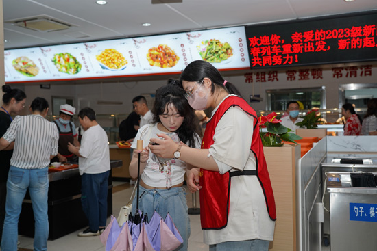 食堂后厨提前部署,细化分工,进一步优化就餐环境,提升师生就餐体验感,全力为新生开好“第一餐”。餐厅内一盘盘搭配精致、口感丰富、物美价廉的菜肴和可口的热汤供新生自行选择,新生们结伴围坐成一桌用餐,一筷一勺,送入口中是美味,化在心头是温暖。
