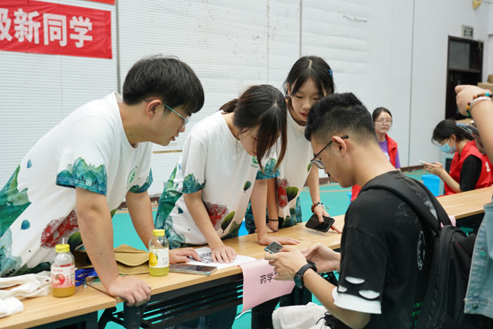“同学,请往这边走。”在各分院迎新点,新生在班主任、班助的引导下,陆续完成签名确认、领取寝室钥匙和学生手册等入学报到流程。