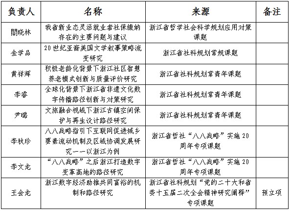 学院获批8项2024年度浙江省哲学社会科学规划课题