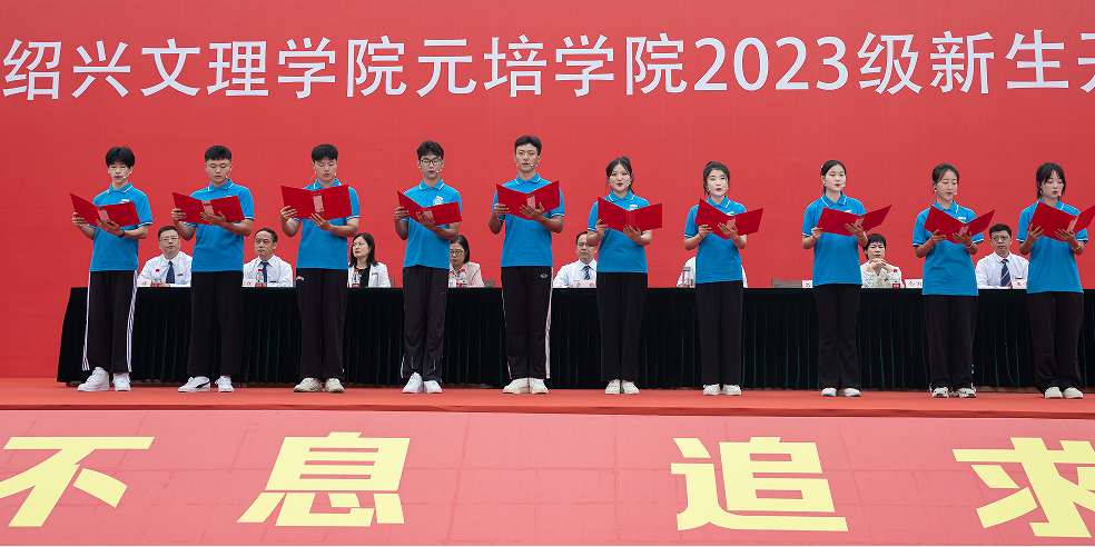 新生代表宣读《元培学子文明修身承诺书》,承诺将以此作为行动的准则、努力的方向,砥砺前行,彰显新时代元培青年风采。