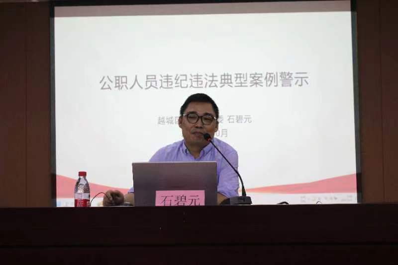 调研会后,石碧元为梁柏台法学院、马克思主义分院师生作《公职人员违纪违法典型案例警示》专题讲座。他结合反腐反贪工作经验,分析当前反腐倡廉的新形势、新要求,从违反中央八项规定精神、违反党的“六大纪律”、违反国家法律法规三个层面例举身边的典型案例,告诫学生要守纪律讲规矩,规范职业行为,规避职业风险。