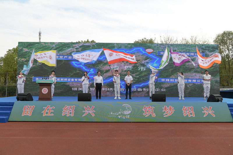 招聘会上,举行了“留在绍兴”青年大学生认知实习出征授旗仪式。市人社局党组成员、就促中心党委副书记、副主任陈海淮和学院党委书记梁瑜共同为出征团队授旗。