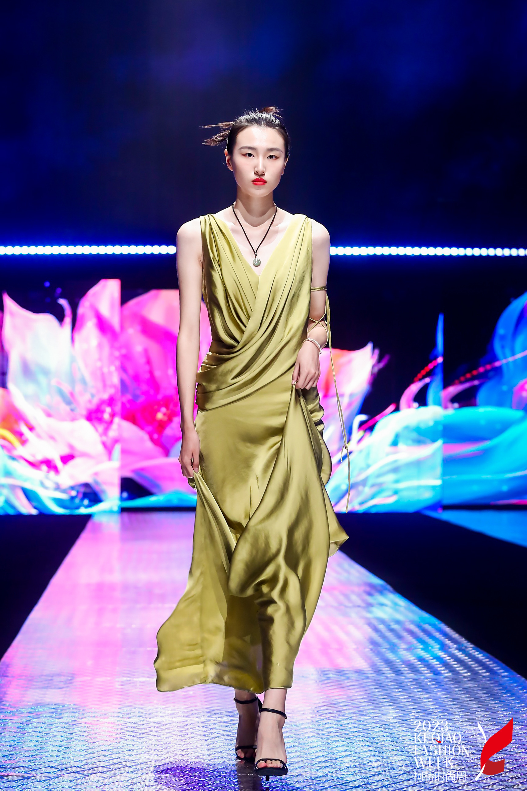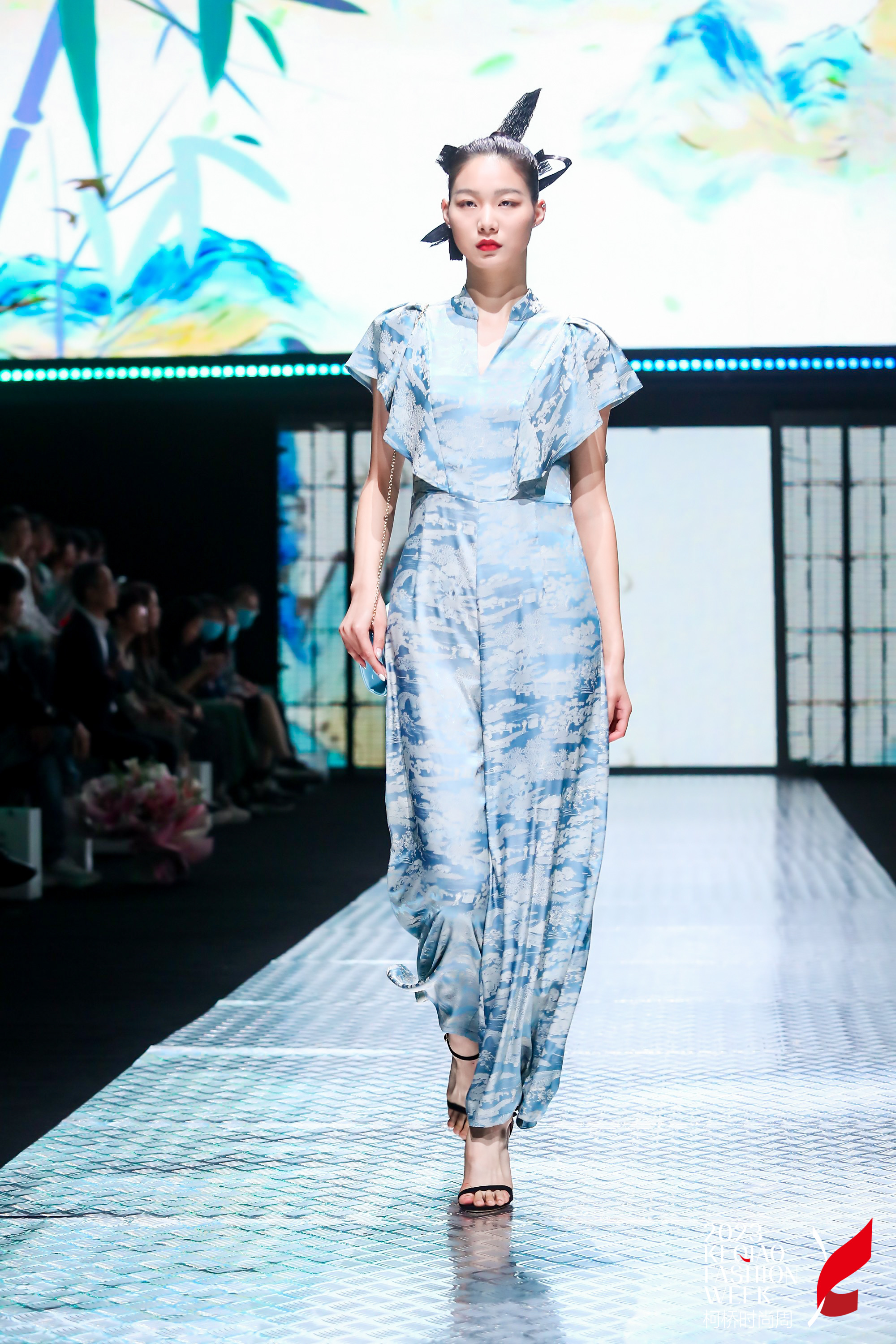 发布会主题“玉宇澄清”灵感源自宋代诗词,意为将天空明净、晴朗、宁静的美好意象融入到服装设计之中,表达人们对美好事物的向往和追求。成衣作品在色彩运用上采用中国传统书画作品中黑白灰等色的同时,辅以淡粉、淡蓝、鹅黄、艾青、中绿等中间色彩,营造纯净、高雅、宁静的氛围,让穿着者在喧嚣的现实世界中感受到一份内心的宁静和美好,展现中国传统文化的清新和优雅。