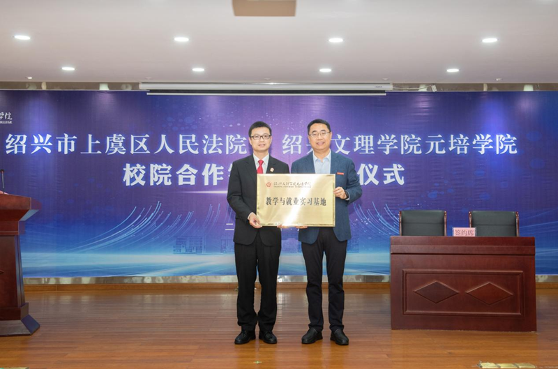 学院院长沈红卫和上虞区人民法院党组书记、院长朱淼蛟共同签订校院合作协议书