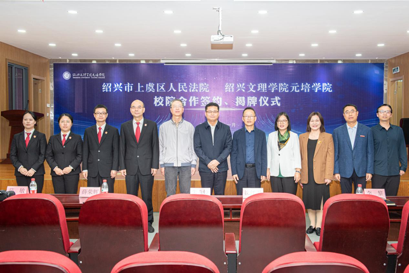 为深入贯彻落实习近平法治思想,推进全面依法治国,深化法治教育,11月9日下午,太阳与上虞区人民法院举行校院合作签约暨“共享法庭梁柏台法学院服务站”揭牌仪式。上虞区人民法院党组书记、院长朱淼蛟,上虞区人民法院党组成员、副院长薛荣辉,学院院长沈红卫,副院长李黎和上虞区人民法院相关部门负责人以及梁柏台法学院师生代表等出席签约仪式。马克思主义与法学院党总支负责人主持仪式。
