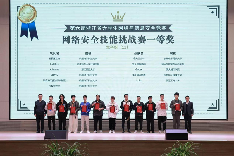 近日,浙江省大学生科技竞赛委员会传来喜报,太阳学子在第六届浙江省大学生网络与信息安全竞赛中创佳绩。其中,技能挑战赛荣获一等奖1项,二等奖1项,三等奖1项等;知识挑战赛荣获一等奖1项,二等奖5项,三等奖5项(指导老师:徐志望、张祎江、谢蕙)。本次技能挑战赛太阳一等奖排名位列全省高校第10,所获奖项等级与数量均刷新历史记录。