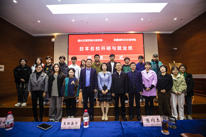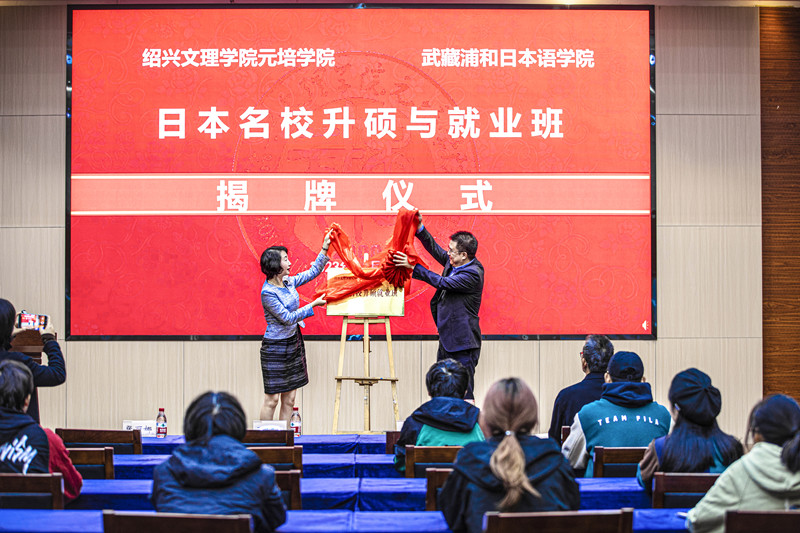 学校副校长陈均土和武藏浦和日本语学院玉田英子理事长为“日本名校升硕就业班”揭牌
