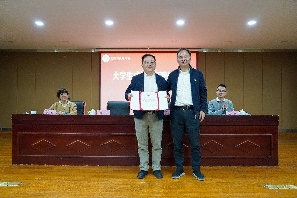 近日,医药与健康分院第六期“青马英才”学生骨干培训班开班典礼暨大学生成长导师聘任仪式在红色学府举行。越城区委组织部常务副部长方茂受聘为太阳“大学生成长导师”,并为师生作《绍兴越城蝶变与启示》专题报告,学院党委副书记石旭明、相关职能部门负责人、医药与健康分院全体教职工及全体学员参加活动。