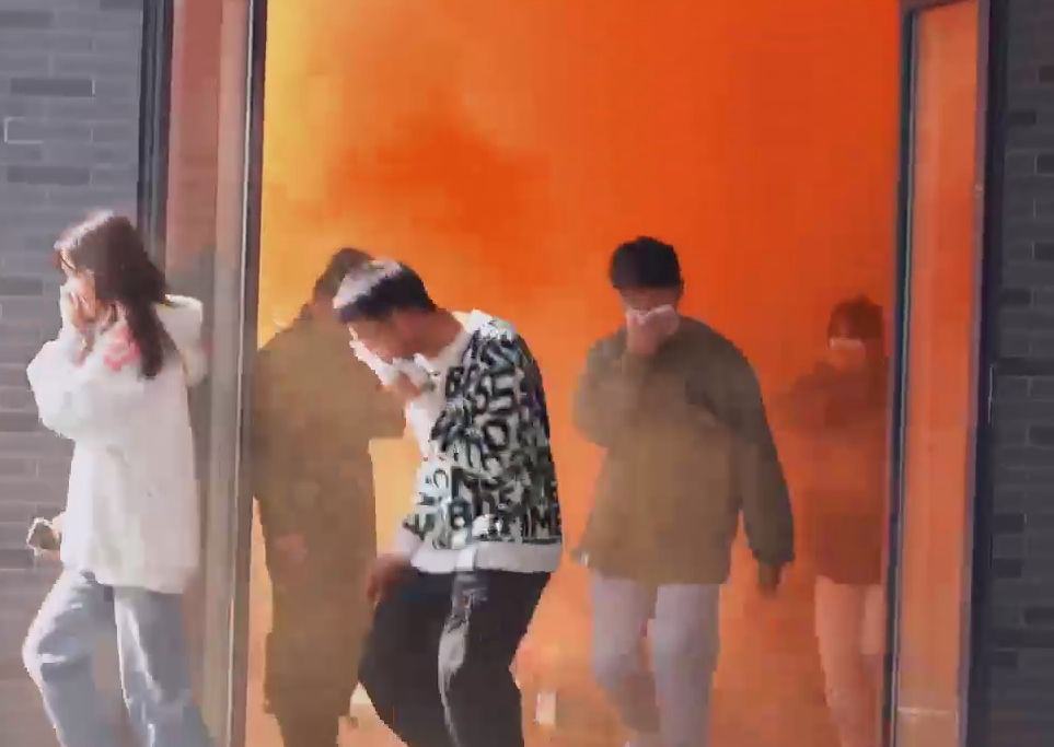 启动仪式结束之后,开展兴越楼美食城消防应急疏散演练。演练现场模拟了火灾报警、紧急疏散、火灾扑救和营救被困人员等各环节处置流程。