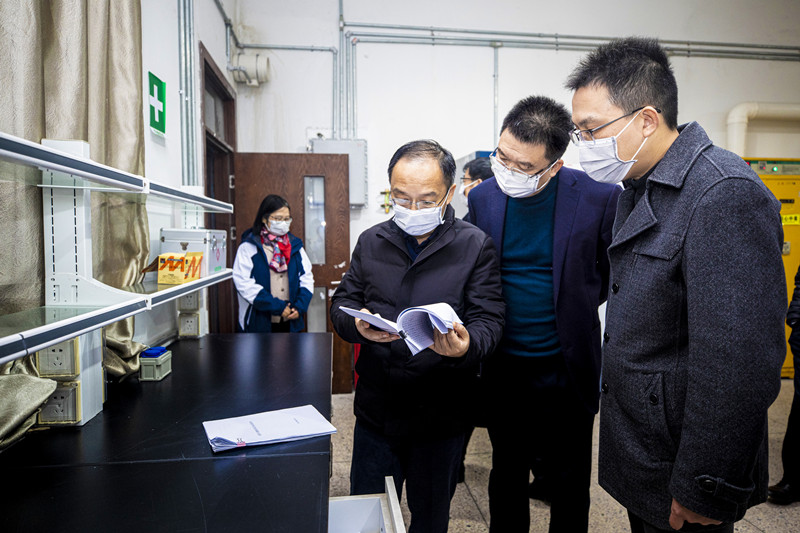 校领导一行先后来到南区学生公寓1号楼、“一站式”综合服务中心、南区群贤楼餐厅、教学楼危化品存放室,实地检查学生公寓卫生条件、设施配备情况,认真询问学生自习及改造后的室内学习环境情况,仔细察看食堂后厨环境、食品卫生安全和消防安全设施状况,详细了解危化品存放室整体环境以及各项安全措施落实情况等,并就检查过程中发现的相关问题予以现场指导。