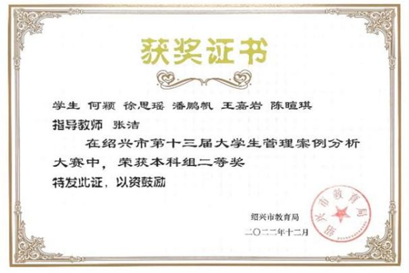 竞赛达人何颖,曾获国家级科研立项1项、“农行杯”第十八届浙江省大学生电子商务竞赛本科组二等奖、浙江省“民生民意杯”第十一届大学生统计调查方案设计大赛二等奖、2023年iCAN大学生创新创业大赛一等奖、绍兴市第十二届大学生电子商务竞赛一等奖等14个竞赛奖项。学习先锋梁晨,优秀学习委员,成绩名列前茅,曾获得两次省政府奖学金、两次综合一等奖学金、两次院优秀学生干部、在期刊中发表文章。辩论高手卓和强,曾任大学生媒体中心广播台台长,获优秀记者称号,多次获得绍兴市极、校级辩论赛冠军。龙舟健将程方惠,国家龙舟二级裁判员,曾荣获中国名校水上运动公开赛女子皮划艇第三名、省级女子200米团队赛第四名和100米团队第五名。