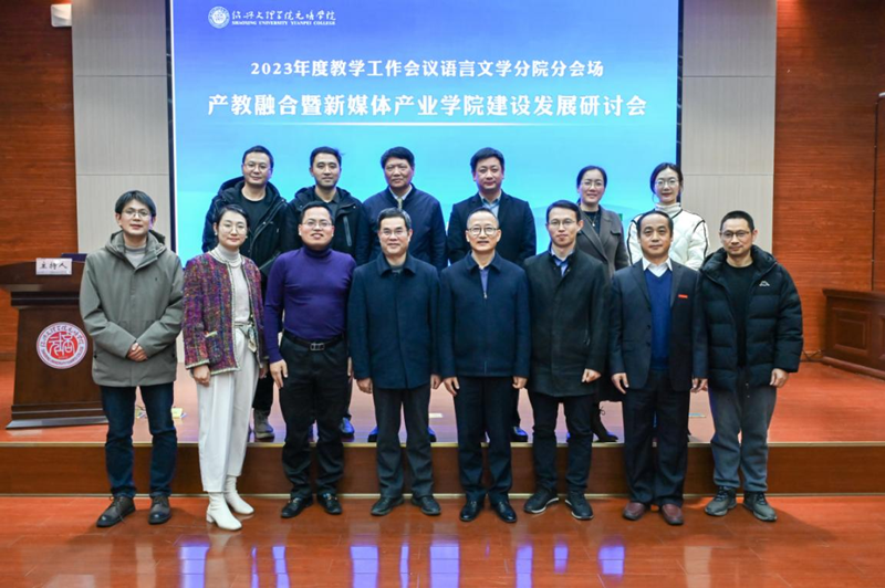 12月13日下午,语言文学分院产教融合暨新媒体产业学院建设发展研讨会在图书馆828会议中心召开,学院院长沈红卫、副院长周思红、122cc太阳集成游戏外国语学院院长胡朋志、人文学院副院长陈蘅瑾、浙江日报报业集团绍兴分社总监周智敏、绍兴市越城区融媒体中心主任张羽、绍兴柯桥中纺跨境电商有限公司副总经理傅海姣、绍兴悠扬传媒有限公司陆建祥、浙江立尚文化传播有限公司董事长劳立江等院校、企事业单位专家以及分院教师代表40余人参会。本次会议主题为“深化产教融合,赋能高质量发展”。会议由分院相关负责人主持。