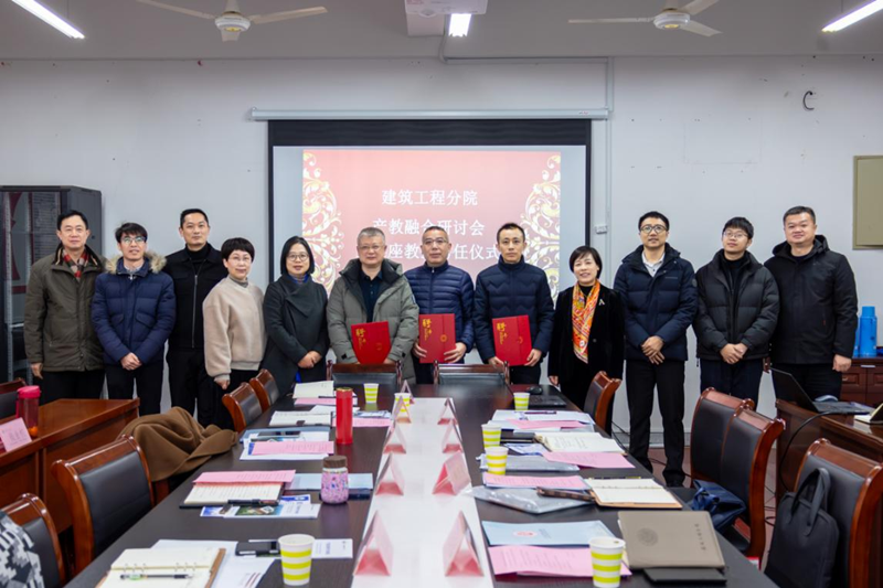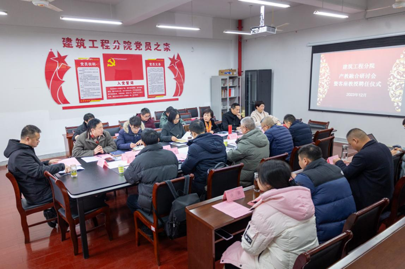 12月18日上午,建筑工程分院产教融合研讨会暨客座教授聘任仪式在8号楼410会议室召开,学院副院长李黎,党委副书记、纪委书记俞国芬,绍兴市建筑产业现代化促进中心主任、教授级高工韩坚强,浙江环宇建设集团有限公司总工、教授级高工童仙敏,华汇设计集团技术创新总监、副总工程师、教授级高工肖景平,浙江中成建工集团有限公司总工程师、教授级高工邢国然,广联达数字教育部产业学院副经理王巨福、浙江区域经理蒋赞港以及人事处、教务处相关负责人、分院教师代表20余人参会。会议由分院相关负责人主持。