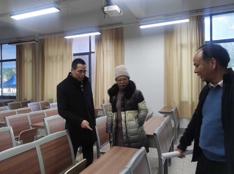 学院领导全面实地踏看考生进场路线、校园环境、宣传标识、考场布置、安检手机存放等区域,明确考试组织过程中的各个环节和重点注意事项,确保校园整洁,标识清晰,考场布置规范,考试组织井然有序。
