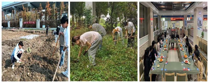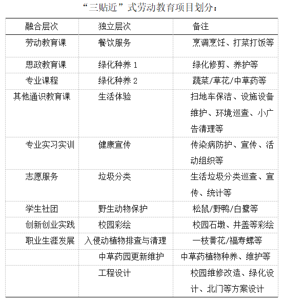 学院基建后勤处通过问询、调查问卷等多渠道,筛选出贴近生活的劳动教育课程,将劳动课程分为有机融入型和独立设置型两个层次。同时邀请教职工及教职工家属参与学院劳动教育工作,在北区开辟5800㎡绿化种养劳动教育实践基地,邀请83名劳动教育指导教师进行现场指导工作。以物业提供保障服务与基地日常管理等,推动校企(学院物业公司)深度融合;以教职工及居住留外楼的教工家属担任劳动教育指导教师,推动教师多元参与;以开辟荒地种植蔬菜、花卉、中草药等,推动绿化项目引领,最终形成校企深度融合、教师多元参与、学生自主选择、绿化项目引领的劳动教育元培模式。当前,开荒运动已接近尾声。医药与健康分院师生设计建造的“药用植物园”,公共基础教育分院师生共同开辟的荒地,信息与机电工程分院开展的温室蔬菜种植培育,经济管理分院种植的花卉、草莓等都已初见雏形。