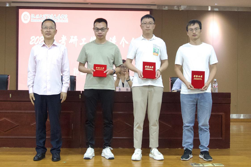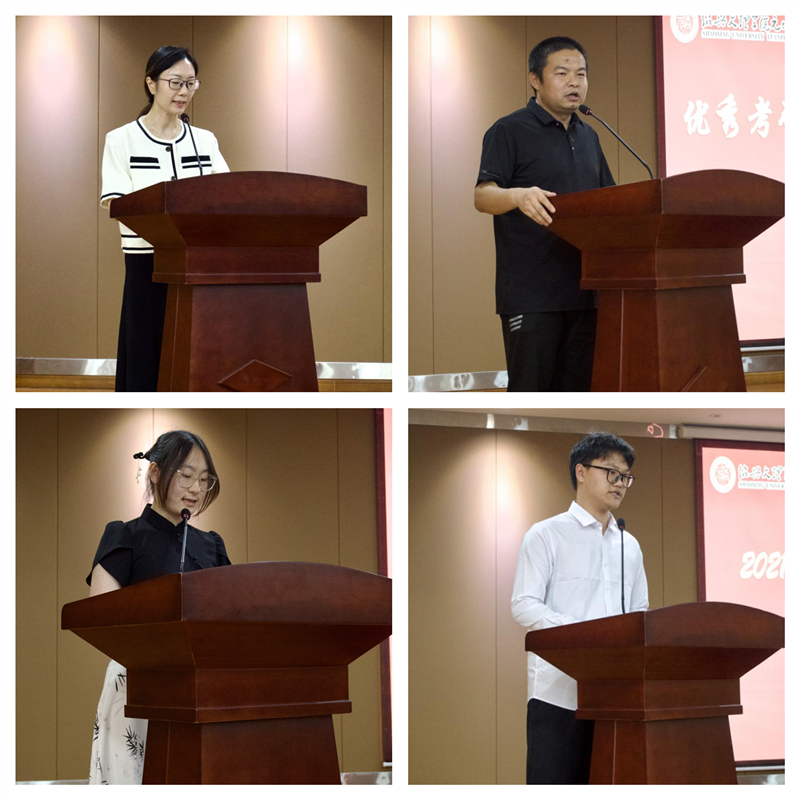 会上,石旭明宣读《关于表彰2023年度考研工作先进个人、优秀指导教师的决定》、《关于表彰2023届毕业生优秀学习标兵的决定》。柴鹏等3位教师被评为“考研工作先进个人”,何振华等80位教师获得“考研优秀指导教师”称号,罗奕欣等177位考研录取同学获得“优秀学习标兵”等荣誉称号。沈红卫、李黎分别获奖教师以及优秀学习标兵代表颁发荣誉证书医药与健康分院药学2003班罗奕欣、纺织服装与艺术设计分院环境设计2101班丁晓冉作为考研录取学生代表及备考学生代表发言。受表彰的教师代表、建筑工程分院教师钱金权,语言文学分院党总支负责人分别就指导学生考研、做好学生考研服务管理工作作经验交流。